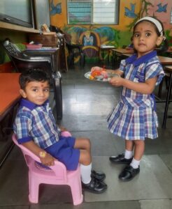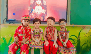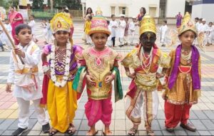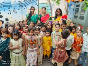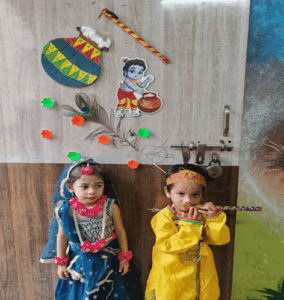 Every year Gokulashtami is celebrated with great joy in our school. All the children dress up as Radha and Lord Krishna. Dahihandi is also broken at that time. We take different activities on this occasion. Children enjoy this festival a lot.