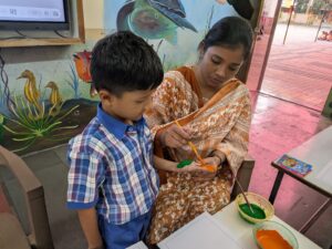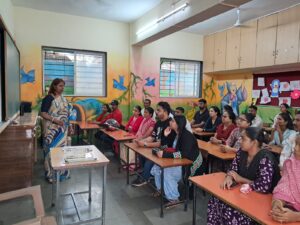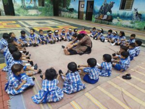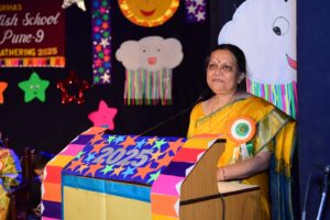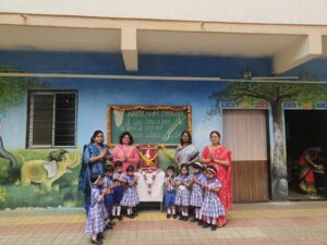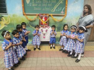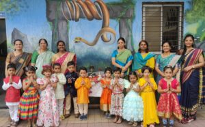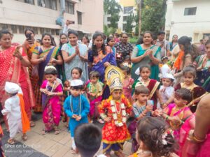 We celebrate Ashadhi Ekadashi every year with great enthusiasm in the Pre-Primary Section of our school. All the children dress up as Lord Vitthal, Rakhumai or Warkari. They chant “Vitthal Vitthal Jay Hari Vitthal” when Palakhi Procession is held. On the occasion of Ashadhi Ekadashi, we organise Marathi Recitation Competition for these children. Ashadhi Ekadashi was celebrated with great enthusiasm on 4th July 2025. All the mother parents were invited for this function.