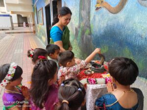 We celebrate Navratri with different activities in our school. The teachers give information about Navratri and its importance to all the children. Bhondla is played during this festival in Maharashtra so we also get Bhondla played by these children in our school.